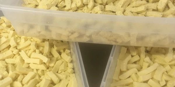 We make our cheddar cheese curds fresh each week. Fun and flavorful with a delightful squeak. We have plain, garlic, Old Bay and dill & onion curds available. Great for snacking, add to poutine or bread and fry them.